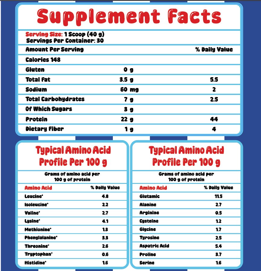 * 22g of best-quality grass-fed calcium caseinate & milk protein concentrate
